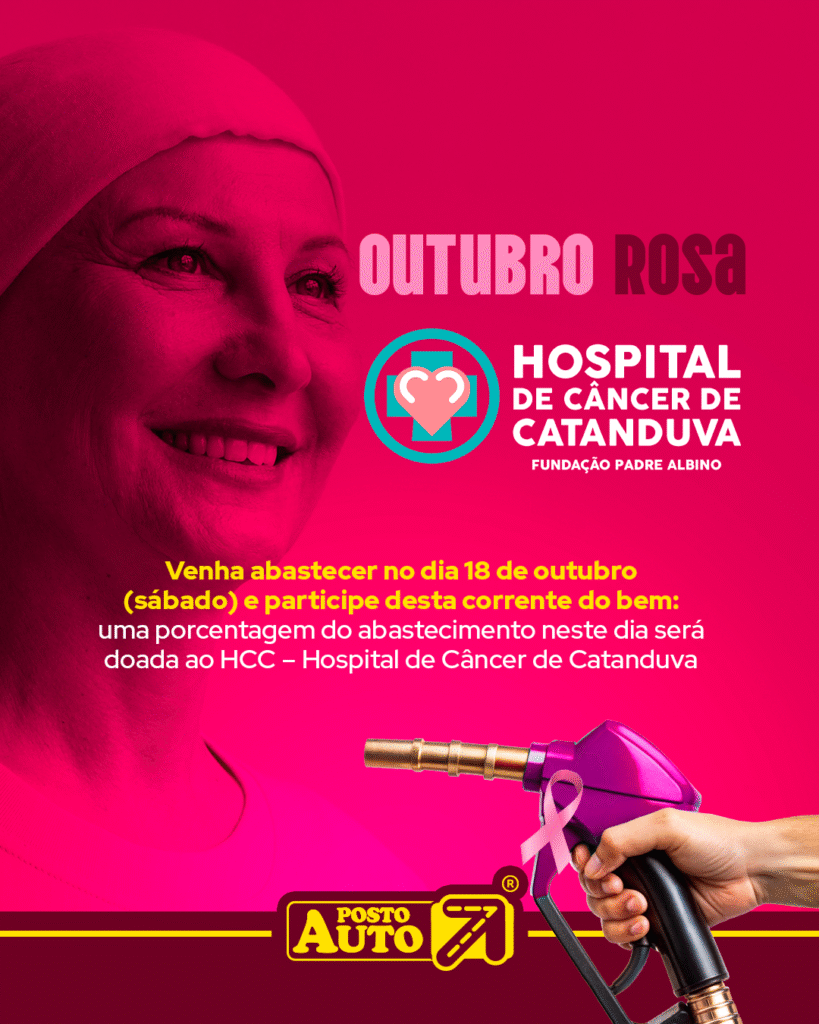 No dia 18 de outubro, o Auto Posto 7, localizado na Rua Sete de Setembro, 818, realiza ação especial em prol do Hospital de Câncer de Catanduva (HCC).