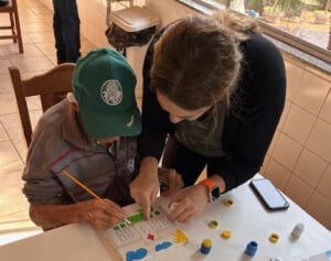 Nesta quinta-feira (19 de setembro), os residentes do Recanto Monsenhor Albino participaram de oficina de pintura, conduzida pela educadora física Marina Fernandes, que preparou esboços das
