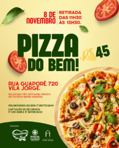 Os Voluntários do Bem lançaram mais uma edição da Pizza do Bem, iniciativa solidária em prol do Hospital de Câncer de Catanduva (HCC). As pizzas estão à venda por R$
