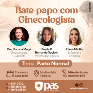 O Padre Albino Saúde (PAS) promove no dia 1º de setembro, às 19h, bate-papo sobre parto normal com profissionais de obstetrícia. O encontro, voltado para gestantes
