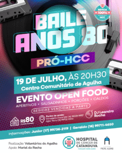 No dia 19 de julho, a partir das 20h30, os Voluntários de Agulha, com apoio de Mariel da Rocha, realizam o Baile Anos 80 pró-HCC. O evento será realizado no Centro Comunitário de Agulha e promete noite