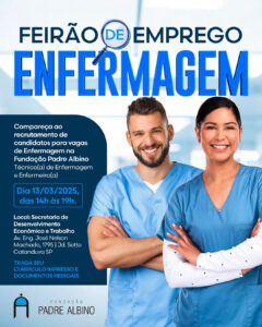 No dia 13 de março, das 14h às 19h, a Fundação Padre Albino promoverá Feirão de Emprego voltado para profissionais da área de Enfermagem na Secretaria