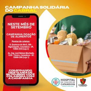 Durante todo o mês de setembro, a Cabral Automóveis promove a Campanha Solidária do Cabral, iniciativa voltada para arrecadação de alimentos para apoiar o Hospital de