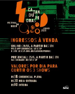 Nesta terça-feira, dia 24, às 17h, o Sesc Catanduva abre as vendas online de ingressos para a 13ª edição do Catandupedras — festival de rock,