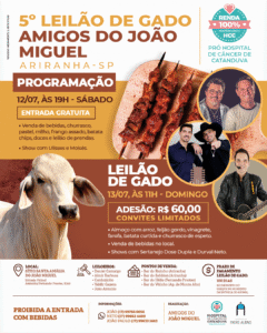 5º Leilão de Gado Amigos do João Miguel terá programação especial e renda revertida ao HCC