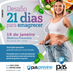 O Padre Albino Saúde/PAS promove, de 19 de janeiro a 9 de fevereiro, o Desafio de 21 Dias para Emagrecer, iniciativa voltada à promoção da saúde, do bem-estar