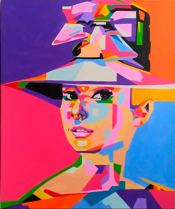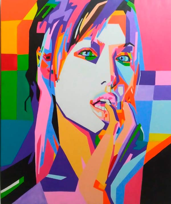 Seu trabalho se distingue pelos traços firmes e precisos, sem o uso de fita isolante na divisão de traços e cores e suas telas são uma combinação de cores elegante e seus ângulos marcam os traços dos rostos das personalidades com requinte.