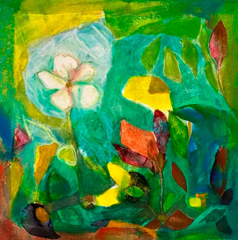 Tania Martins nos convida a uma imersão de suas obras através de uma abstração pictórica repleta de dinamismo. Suas composições são uma celebração visual onde “manchas de cor e sobreposições gestuais” estabelecem um diálogo fluído, dando vida a formas que evocam florações em seus múltiplos estágios. A paleta de cores, dominada por verdes, roxos e amarelos, cria uma “polifonia visual que reflete a vitalidade e a transformação típicas da estação representada”, um verdadeiro hino à primavera.