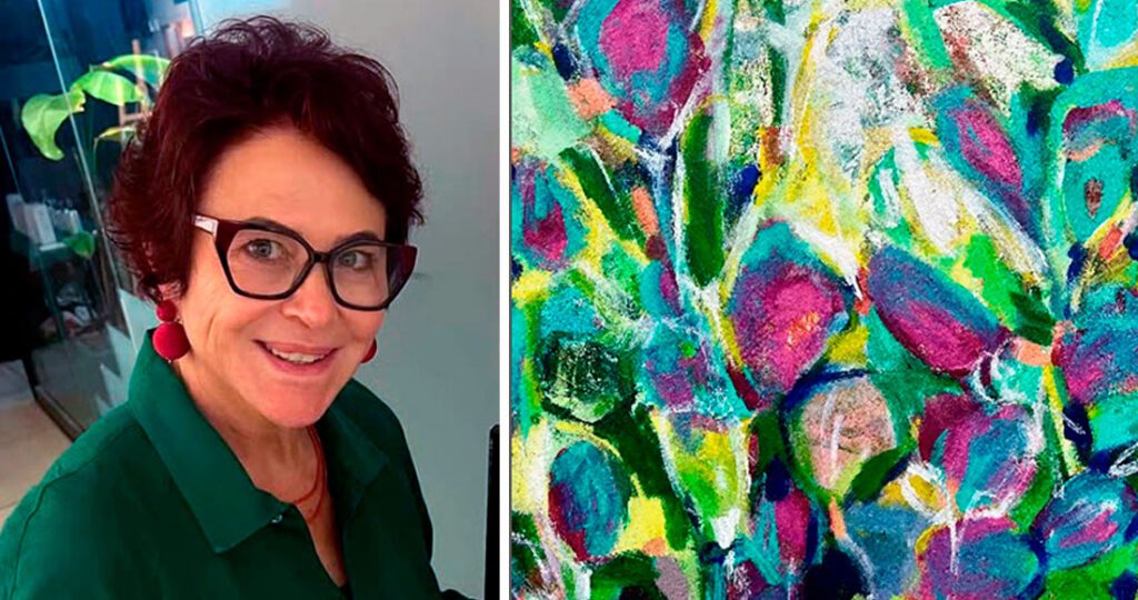 Tania Martins nos convida a uma imersão de suas obras através de uma abstração pictórica repleta de dinamismo. Suas composições são uma celebração visual onde “manchas de cor e sobreposições gestuais” estabelecem um diálogo fluído, dando vida a formas que evocam florações em seus múltiplos estágios. A paleta de cores, dominada por verdes, roxos e amarelos, cria uma “polifonia visual que reflete a vitalidade e a transformação típicas da estação representada”, um verdadeiro hino à primavera.