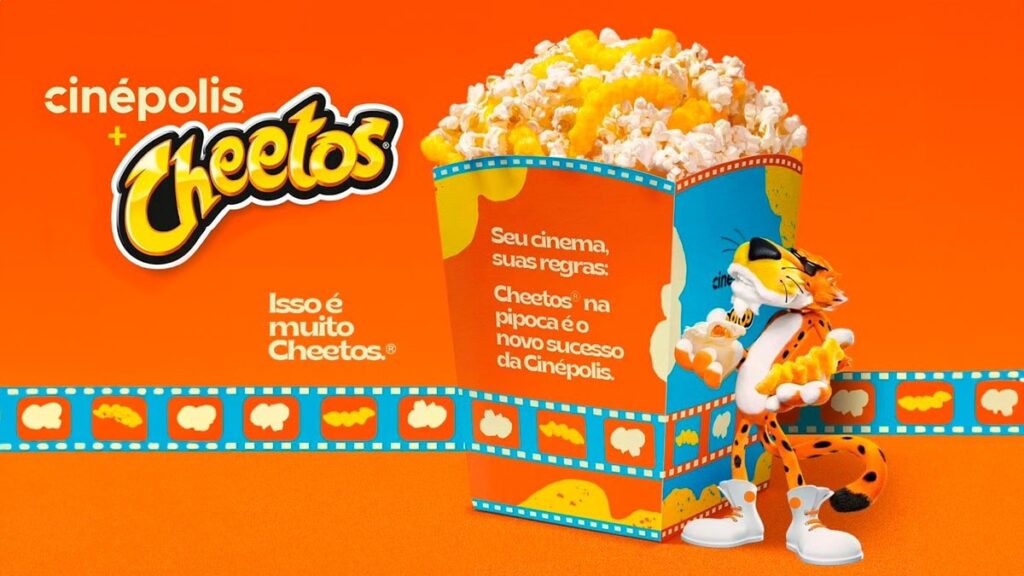 Por tempo limitado, a Cinépolis, em uma parceria exclusiva com a PepsiCo, oferece ao público mais uma opção de pipoca em seus cinemas, o delicioso sabor Cheetos.