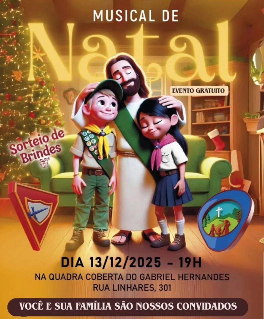 O Clube de Aventureiros Leõezinhos do Oeste e o Clube de Desbravadores Leões do Oeste promovem no sábado, 13 de dezembro, o Musical de Natal 2025, um evento gratuito aberto à comunidade. A apresentação será realizada às 19h, na Quadra Coberta do bairro Gabriel Hernandes, situada na Rua Linhares, 301, em Catanduva.