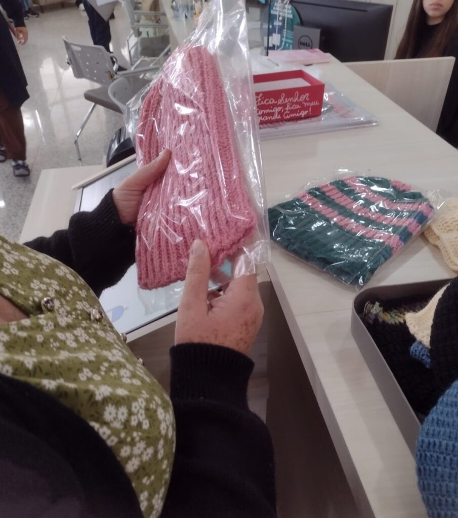 A ação envolveu diversos voluntários, que doaram novelos de lã e, em alguns casos, também confeccionaram as peças. O resultado foi a produção de dezenas de itens quentinhos e coloridos, disponíveis na recepção da Radioterapia para aquecer, literalmente e simbolicamente, aqueles que enfrentam o frio e o tratamento oncológico.