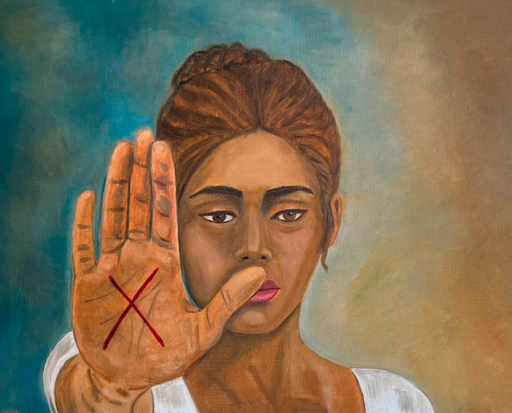 “Embora a pesquisa tenha se inspirado no modelo da Via Sacra de Jesus, a exposição tem como foco as dores enfrentadas pelas mulheres, independentemente de suas crenças religiosas”, explica a autora das obras. “As obras abordam temas como o aprisionamento, a exploração sexual de jovens, o trabalho análogo à escravidão que afeta mulheres em diversas partes do mundo, a violência verbal e doméstica, além da dor das mães que se deparam com seus filhos em situações de flagelo no sistema penitenciário, o luto materno, feminicídio, entre outros”, acrescenta.