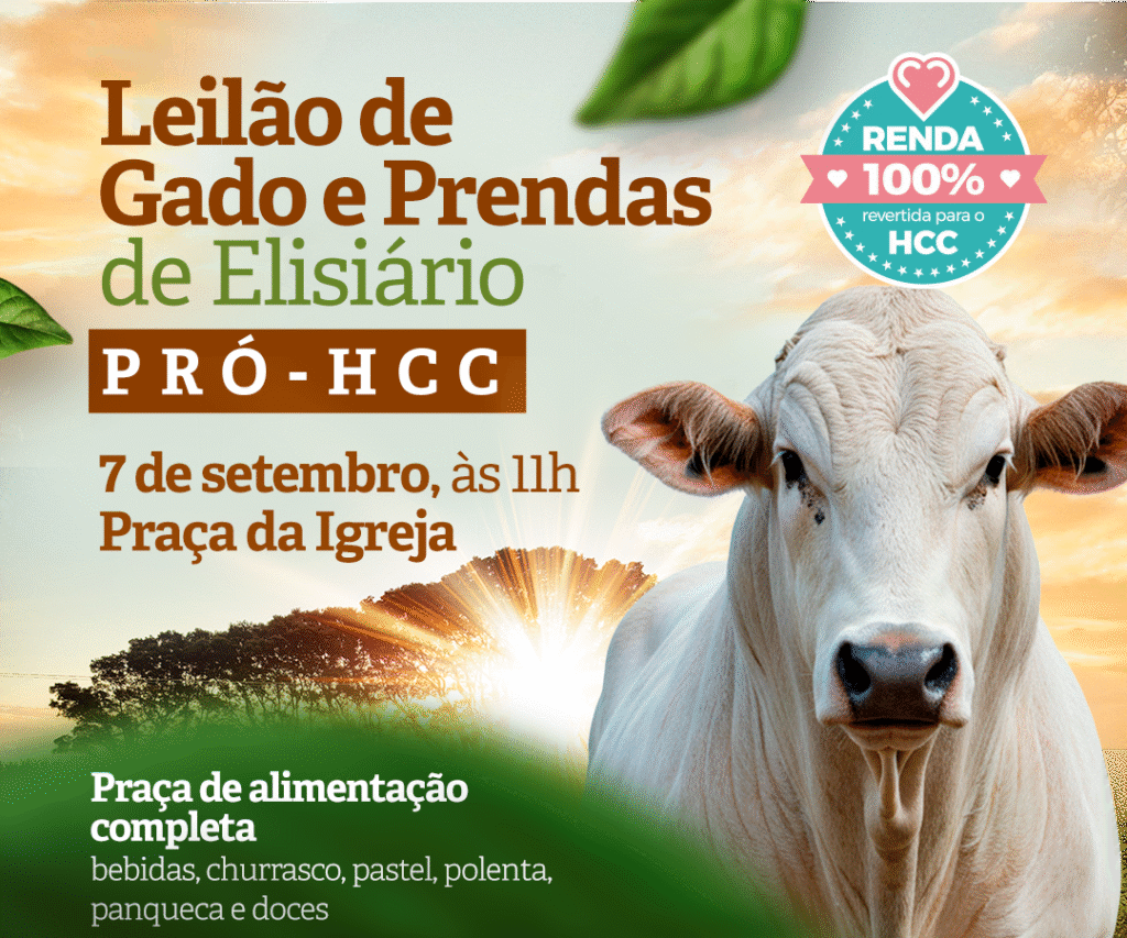 No dia 7 de setembro acontece o 1º Leilão de Gado e Prendas de Elisiário em prol do Hospital de Câncer de Catanduva (HCC). O evento acontece a partir das 11 horas, na Praça da Igreja, com entrada gratuita.