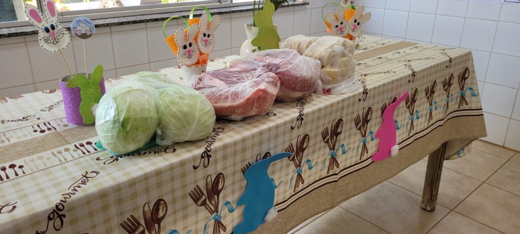 O Recanto Monsenhor Albino recebeu, nesta quarta-feira (1º), a doação de alimentos do Lions Clube Catanduva, reforçando tradição solidária que se repete anualmente em apoio ao almoço de Páscoa das pessoas idosas institucionalizadas. O gesto solidário foi realizado por Rosângela Zocchi e Regina Bocchini, que representaram a entidade na entrega dos itens. Ao todo foram doados repolhos para salada, pernil e rondelli, que contribuirão para a preparação da refeição especial de Páscoa.