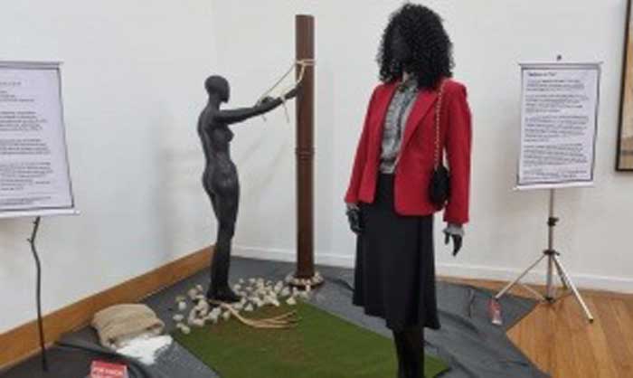 A instalação ” Mulheres do Paço “, de Monteiro de Barros, discute as conquistas sociais e econômicas da mulher negra no Brasil desde o século XVI até hoje.
