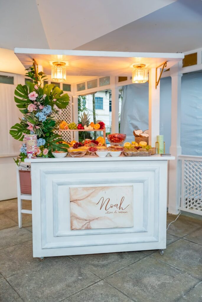 Além do maravilhoso cardápio, da Master Buffet, assinado pelo chef Henrique Blum, os presentes irão degustar da Designer Cake Michele Madeira, com o tema, donuts personalizados, do Ateliê dos Donuts, e também os bem-vindos com recheios diversos, da Lili Bem Casados, e os doces da brigaderia Tentação. Isso, sem esquecer da Noah Estações, que levou ao paladar o delicioso sabor da estação com açaí e frutas tropicais exóticas.