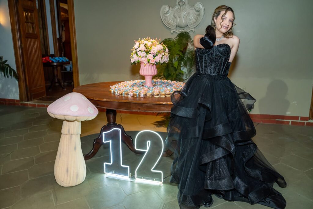 Depois de oito horas de intensa produção, enfim, a grande noite começou! Sophia Ellen, oficialmente, brindou seus 12 anos no puro glamour em uma tradicional e luxuosa Casa de Festas no Alto da Boa Vista, no Rio de Janeiro, sob o tema ‘Alice no País das Maravilhas’, uma homenagem à peça que atua. Com um radiante vestido preto, do Atelier Gugu Fernando e com um lindo cabelo e maquiagem, de Bruna Gonçalves, a atriz e influencer, acompanhada dos pais, João e Adriana Santana, recebeu, com bastante carinho, seus convidados para um momento mais que inesquecível. Bastante emocionada, aplaudida e reverenciada, a jovem agradeceu com um lindo sorriso no rosto.