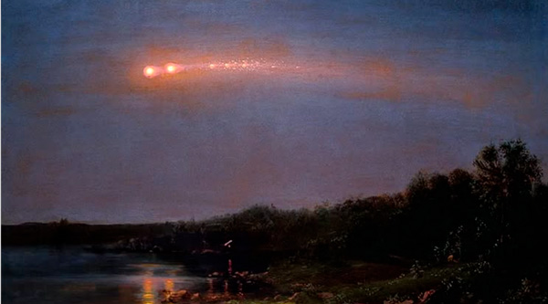 Frederic Edwin Church, artista da conceituada Escola do Rio Hudson, apresenta, com esmerada técnica, o fenômeno celestial da passagem de um meteoro, acima de uma tranquila paisagem rural, com a sua cauda flamejante iluminando a escuridão. O brilho dele contrasta assim com o denso azul profundo da noite, criando uma sensação de mistério.