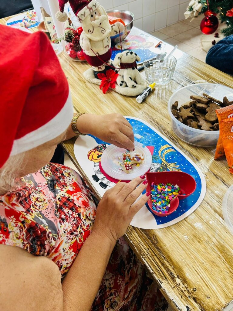 Durante a oficina, os participantes colocaram a “mão na massa” para decorar biscoitos típicos de Natal, em uma experiência lúdica que despertou memórias, emoções e sentimentos ligados às tradições natalinas. “Este tipo de ação proporciona diversão e estímulos importantes para o bem-estar físico, emocional e cognitivo das pessoas idosas”, disse Marina Rabay, educadora física da instituição.