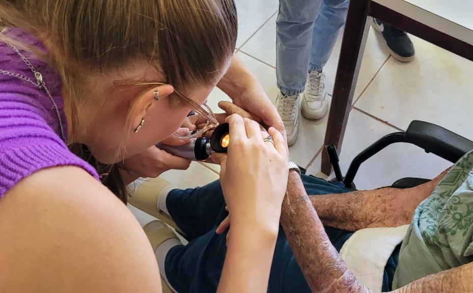 De acordo com Vitória Pagani, integrante da Liga, a atividade foi oportunidade para aprendizado e cuidado. “Nosso objetivo foi identificar alterações comuns do envelhecimento e possíveis doenças dermatológicas. Quando encontramos alguma suspeita de patologia orientamos a instituição a buscar profissional especializado para o diagnóstico mais preciso e o tratamento adequado”, explicou a estudante.