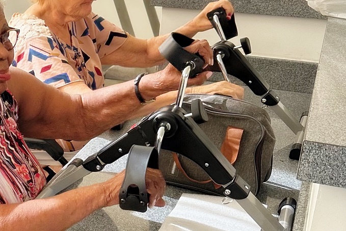 Tradicionalmente utilizado para a reabilitação cardiovascular e muscular dos membros inferiores, o ciclo ergométrico ganha destaque também na terapia dos membros superiores, ampliando suas aplicações e promovendo ainda mais qualidade de vida aos idosos institucionalizadas no Recanto Monsenhor Albino.