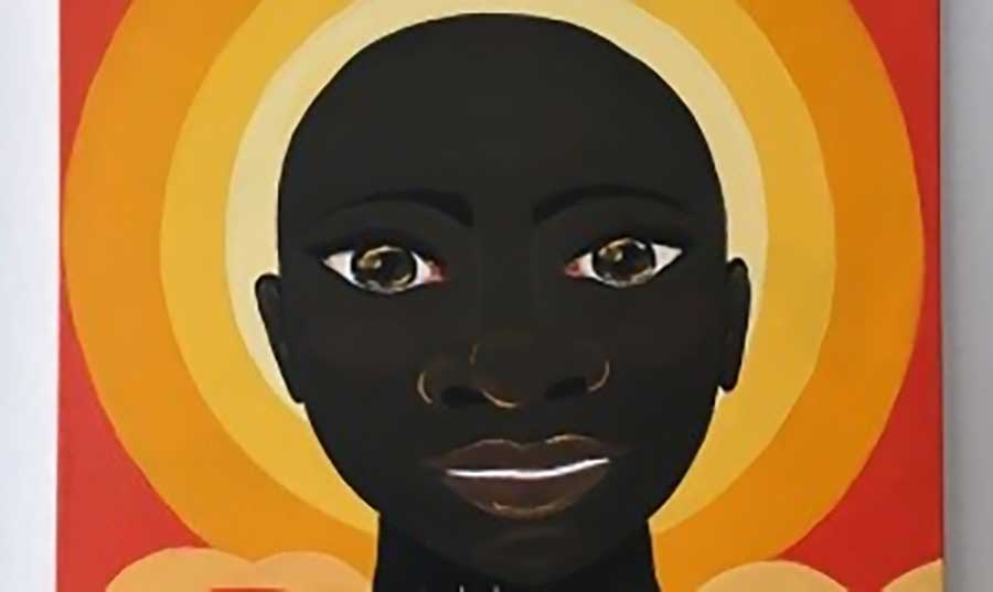 Nascido em Recife, PE, e residente em São Paulo, SP, Alcides Peixe (1977), em “Sangrado I”, pintado com tinta acrílica sobre tela (40 x 30 cm), retoma elementos da iconografia clássica bizantina, como a aureola e, principalmente, o uso da cor amarela, associada à espiritualidade. No entanto, aqui acrescenta o vermelho, associado à vida marcada por dor e sofrimento. O personagem preto que protagoniza a imagem traz, em meio ao peito, uma imagem central associada ao Sagrado Coração de Jesus Há ali o elemento religioso e o vivencial, apontando que cada latejar do órgão é um passo existencial. Para que ele se expanda em toda a sua potencialidade, é necessário combater todo tipo de resistência e preconceito. Esta obra foi selecionada para participar do Salão Paulista de Arte Naif 2021, no Museu de Arte Sacra de São Paulo, SP.