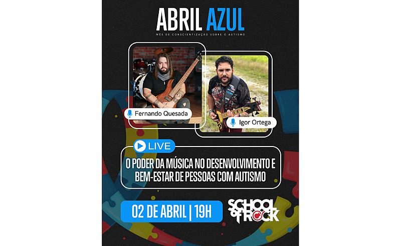 No dia 2 de abril, às 19h, a School of Rock, maior rede de escolas de música do mundo, realiza uma transmissão ao vivo em suas redes sociais em homenagem ao Dia Mundial de Conscientização do Autismo. O convidado para a conversa é o musicoterapeuta Igor Ortega, mediado por Fernando Quesada, sócio diretor da School of Rock. O encontro convida o público a refletir sobre o impacto da música no bem-estar emocional, na inclusão e no desenvolvimento de pessoas com Transtorno do Espectro Autista (TEA).