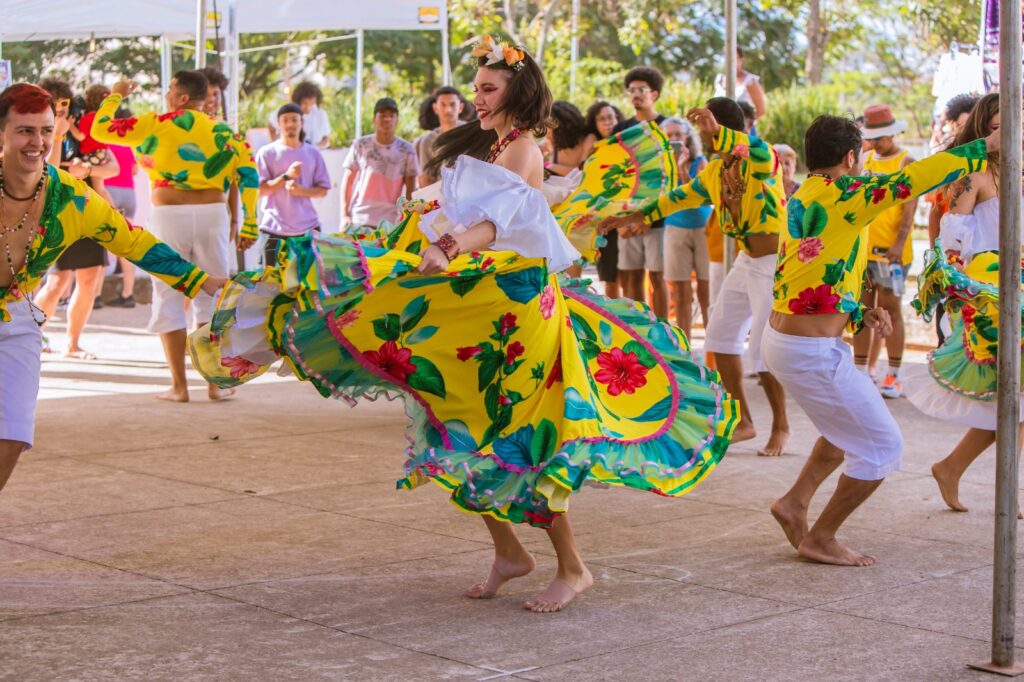 A montagem Festa na Roça do Coletivo Piracema, de Piracicaba, foca na linguagem circense para trazer uma história que celebra a vida no interior com leveza e humor. A apresentação coloca em cena números de palhaçaria, malabarismo, acrobacia e música ao vivo. A dança ecoa com o espetáculo Encantos Amazônicos, do grupo paraense Yandê Transpará. A encenação oferece uma experiência imersiva nas danças tradicionais da Amazônia, como o carimbó e o lundu marajoara, marcadas por movimentos giratórios e pela dança em pares. A pesquisa resgata as profundas raízes africanas, indígenas e europeias que moldaram a rica cultura amazônica.