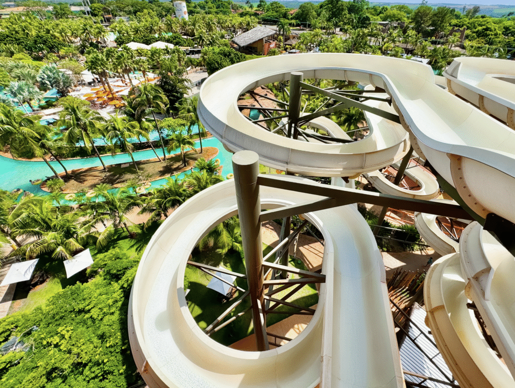 O parque aquático é um oásis no coração de Olímpia. São mais de 800 coqueiros que transformam a paisagem em um refúgio tropical, garantindo sombra fresca e o clima perfeito para quem quer relaxar sem abrir mão da diversão. A praia artificial, com areia fofinha que dá vontade de ficar descalço o dia todo, convida a desacelerar e curtir o momento. E a piscina de ondas é o ponto alto da experiência: água na temperatura certa, sem surpresas do mar, e a sensação deliciosa de estar em um paraíso ensolarado, mas com todo o conforto que só um parque planejado pode oferecer.