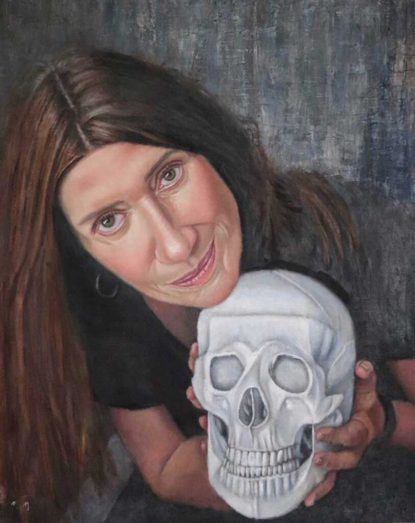 Uma caveira que sorri pode ser, portanto, índice da morte, mas também da reflexão, como indica a célebre cena do “ser ou não ser” do Hamlet shakespeariano e a pintura de Monica Mendes. Afinal, o crânio do bobo da corte tem uma função análoga ao do trabalho da artista visual: fazer pensar sobre a efemeridade humana.