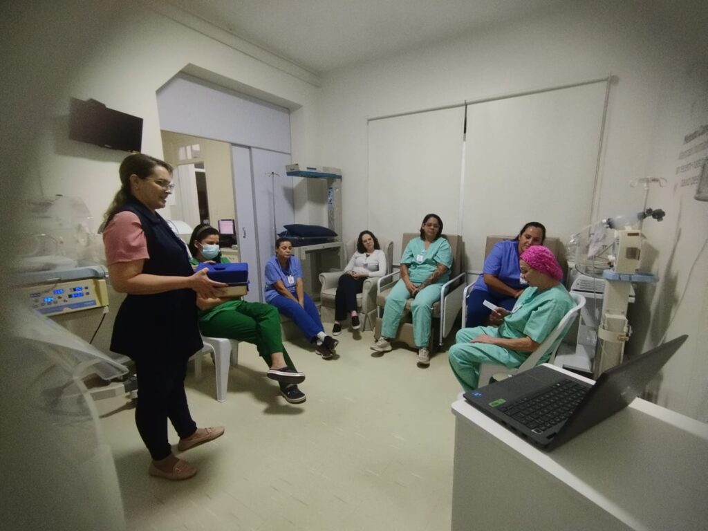 No treinamento foram discutidas hipóteses de casos que podem surgir dentro da rotina da enfermagem. “Este treinamento, aliado às metas da OMS e ao nosso protocolo interno, objetiva auxiliar nossos profissionais de enfermagem a reconhecerem os momentos críticos existentes na comunicação entre as equipes de saúde e sistematizar as ações para melhoria da comunicação entre eles. Isso garante a segurança do paciente e potencializa a qualidade do cuidado prestado no HPA”, ressalta a enfermeira.Fotos/Divulgação FPA