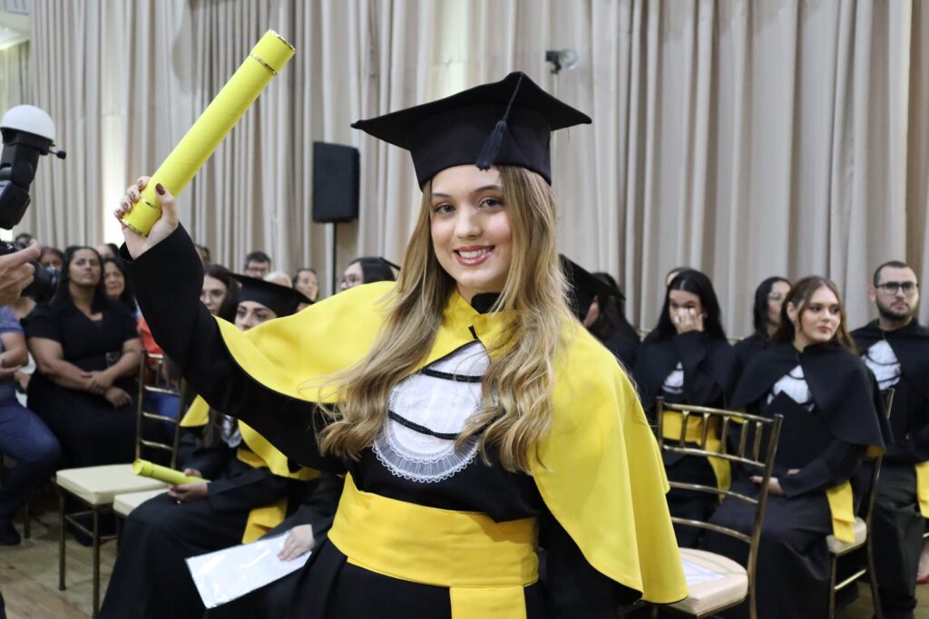 Como oradora da Turma, Isadora de Oliveira fez seu discurso para os pais, mestres e, agora, colegas de profissão. “Conseguimos com força, disciplina, coragem e determinação – mesmo morando longe, trabalhando em dois empregos, conciliando família e estudos. Agora, carregamos uma nova responsabilidade: a de cuidar, pois a Farmácia não é apenas profissão, ela é compromisso com a sociedade. Nosso obrigado aos familiares, professores e todos que direta ou indiretamente fizeram parte dessa conquista”.