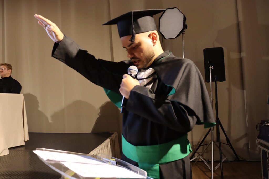 Os oradores expressaram palavras de agradecimento e motivação, seguidas do juramento profissional e da entrega dos certificados. O coordenador, Prof. Me. Igor Augusto Braz, destacou a relevância do educador físico na sociedade em seu discurso. “O educador físico também salva vidas. Por isso, procuramos formar os melhores profissionais possíveis e hoje tenho plena certeza de que entrego verdadeiros educadores para o mercado de trabalho e para o mundo”.