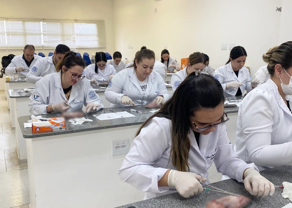A capacitação foi orientada pela coordenadora do curso, Profa. Dra. Luciana Braz de Oliveira Paes, e pelo docente Prof. Me. João Cesar Jacon. Durante a prática, os alunos visualizaram a simulação do processo de sutura, além de aprendizado sobre as normas e diretrizes que regem a Resolução.